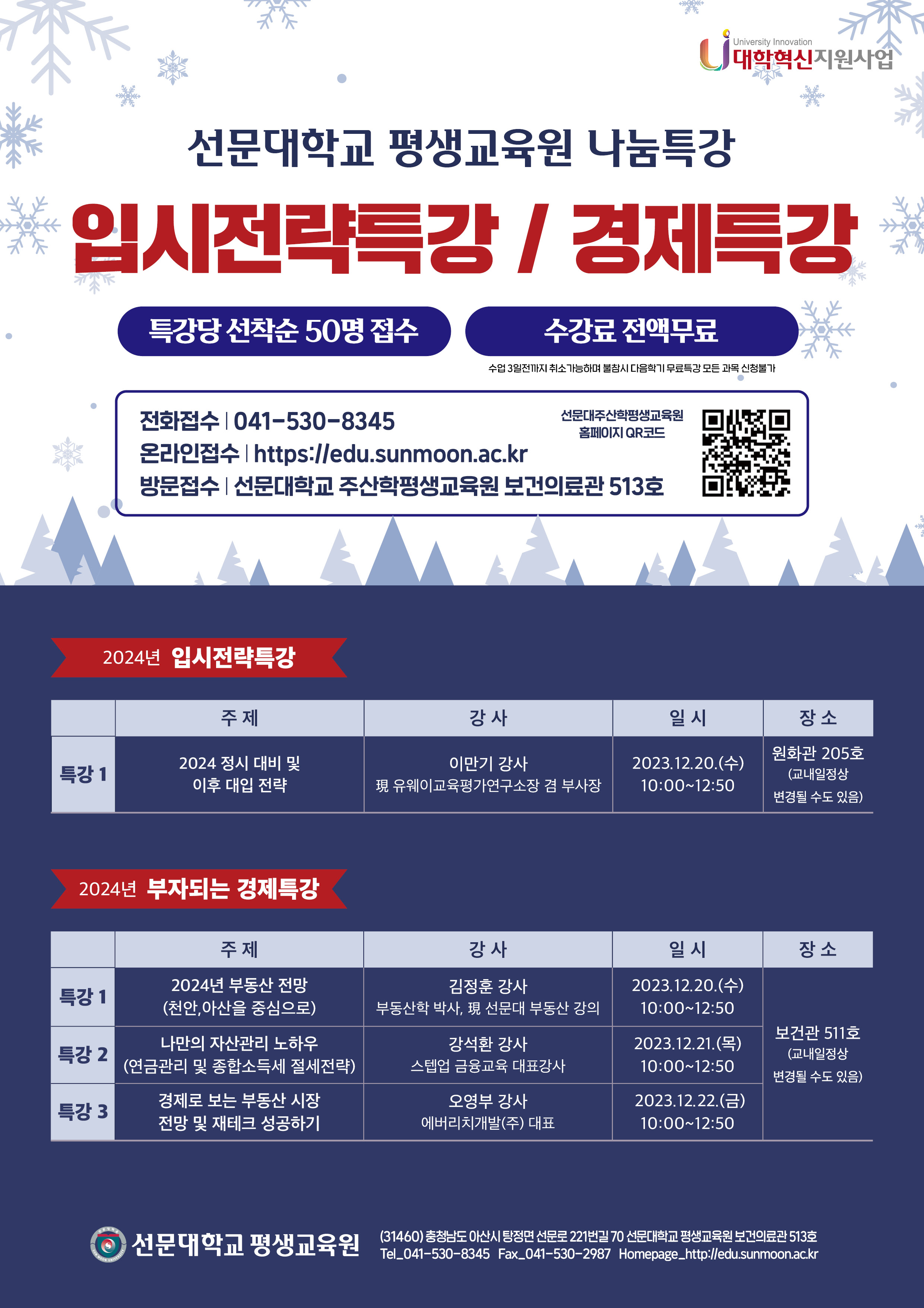 미래를 위한 나의선택 선문대학교 주산학평생교육원