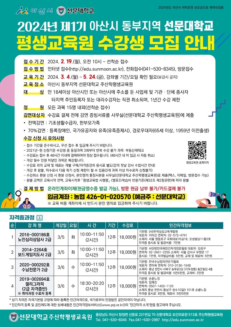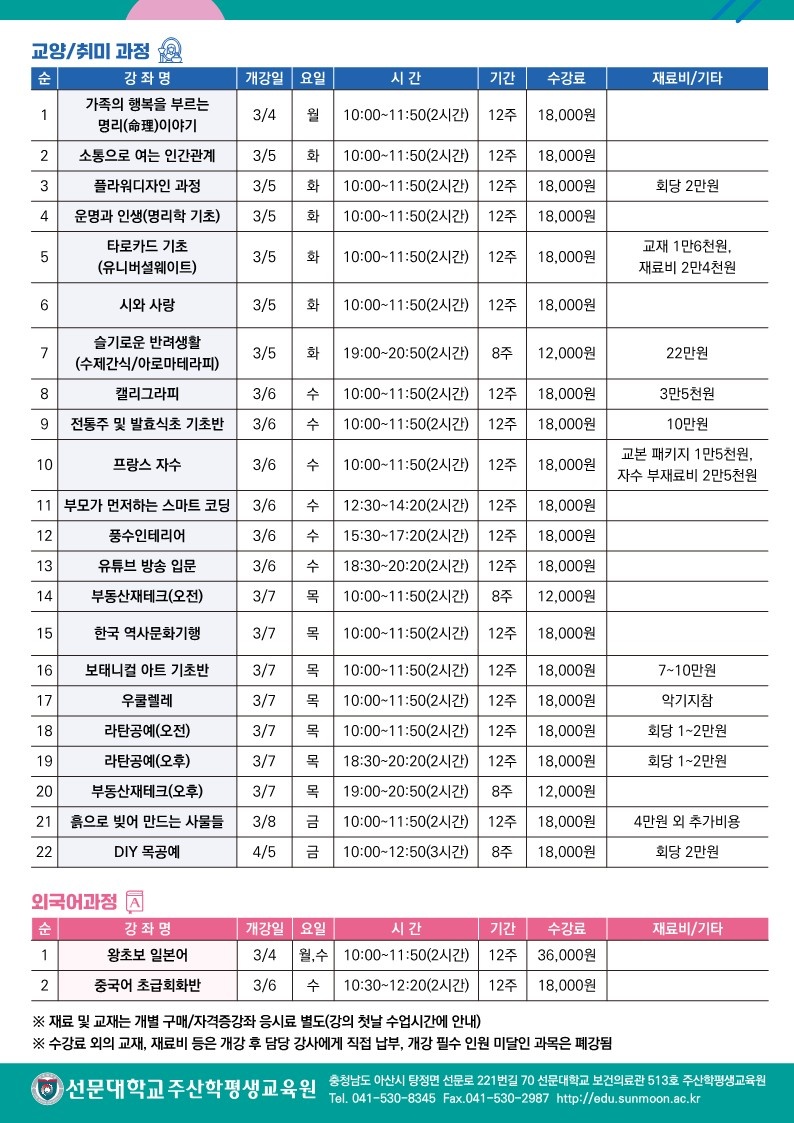 2024년 봄학기 일반강좌/아산시 동부지역 수강생 모집 안내