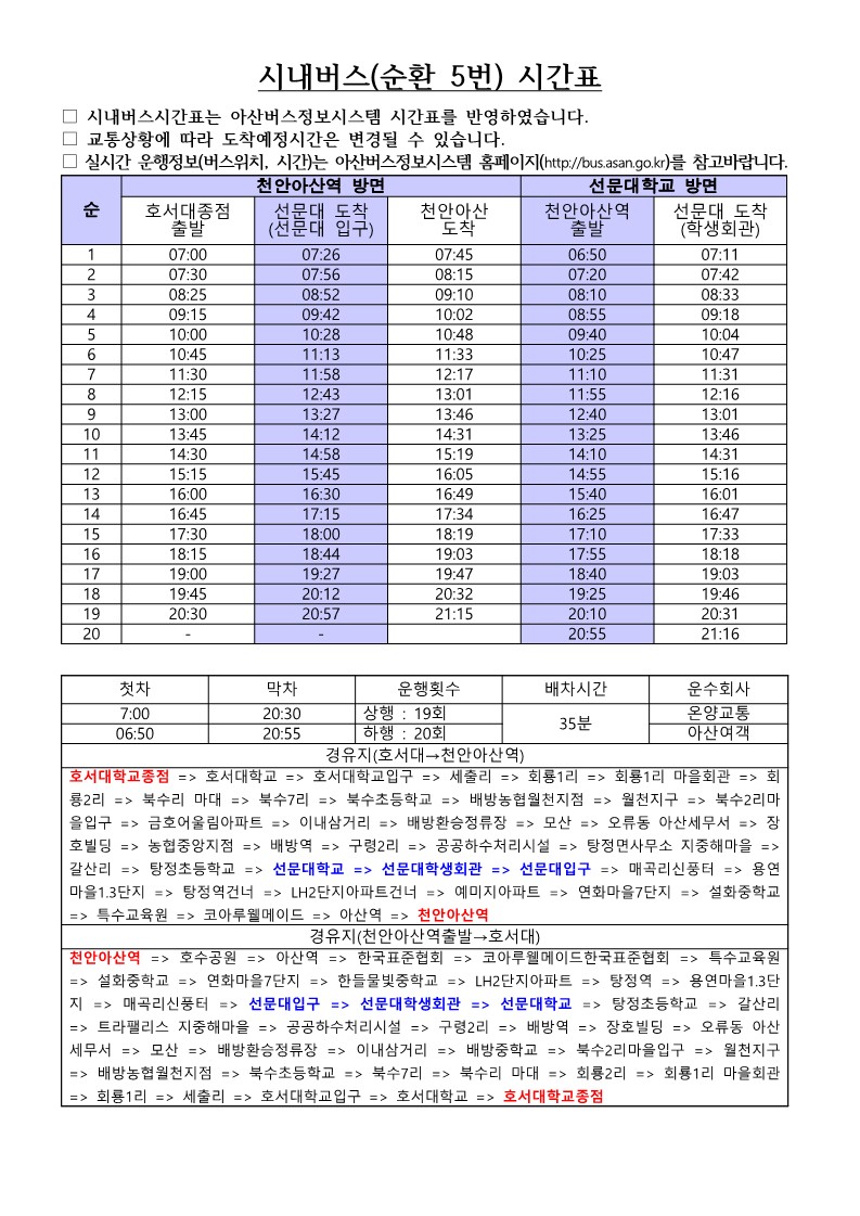- 시내버스 순환 5번 참고하여 이용하시면 편리하게 이용하실 수 있습니다.