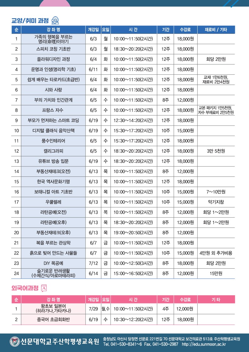 선문대학교 주산학평생교육원 여름학기 일반강좌 전단지.pdf (13.92MB)