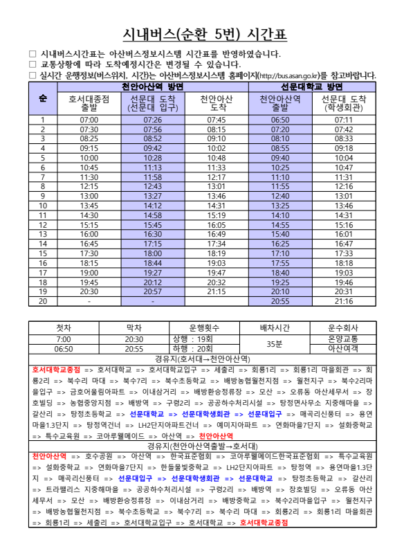 - 시내버스 순환 5번 참고하여 이용하시면 편리하게 이용하실 수 있습니다.