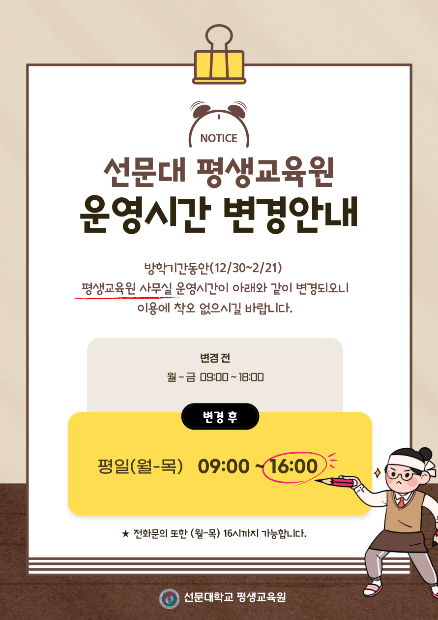 평생교육원 겨울학기 근무시간 안내