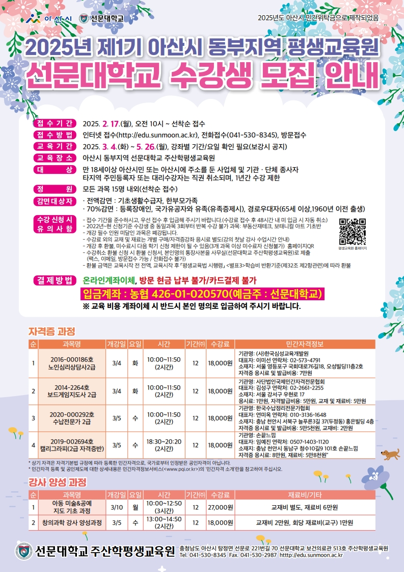 2025년 봄학기 일반강좌/1기 아산시 동부지역 수강생 모집 안내