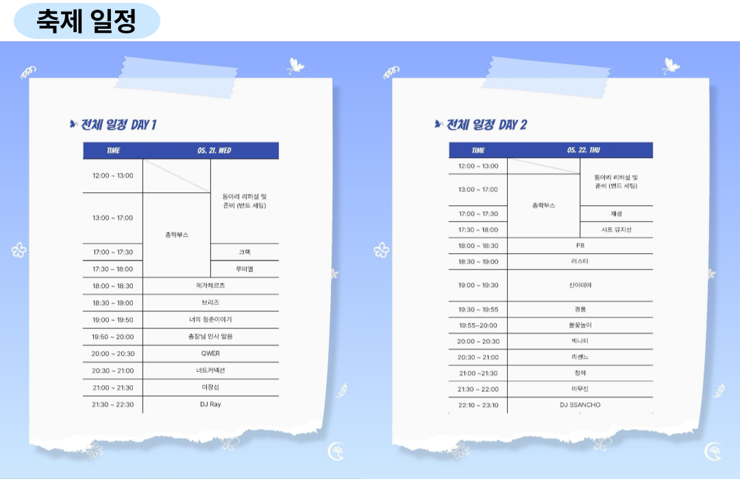 5. 21.(수)~ 5. 22.(목) 2일간 선문대학교 축제가 진행될 예정입니다.