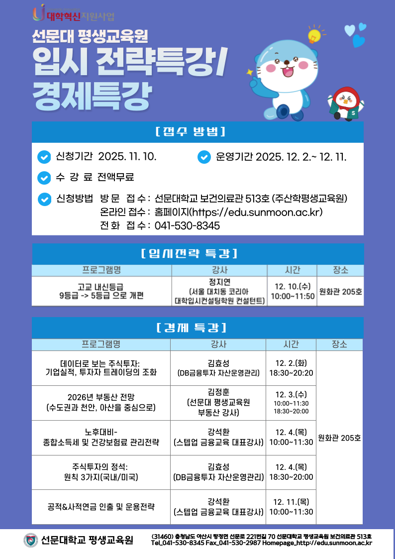 문의: ☎ 041-530-8345 / 평생교육원 담당자