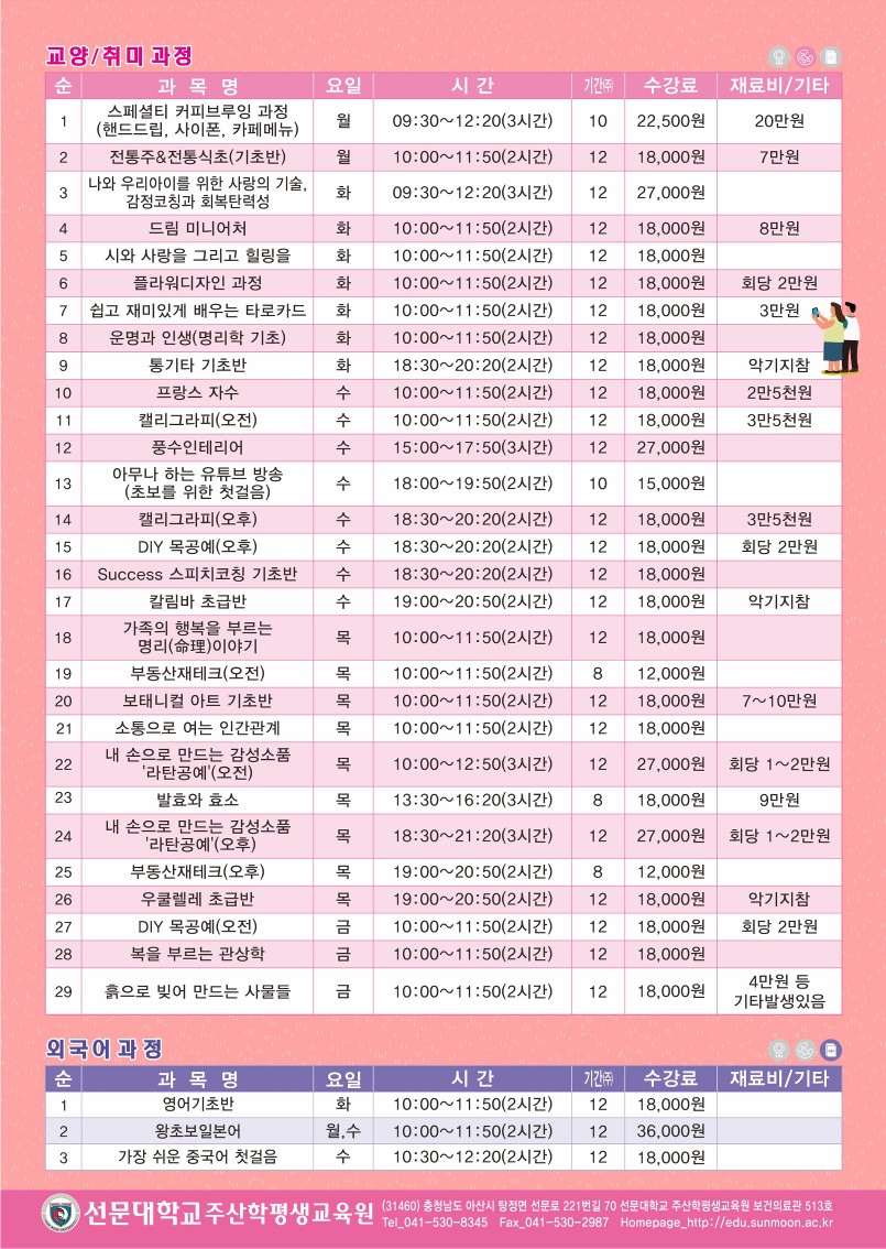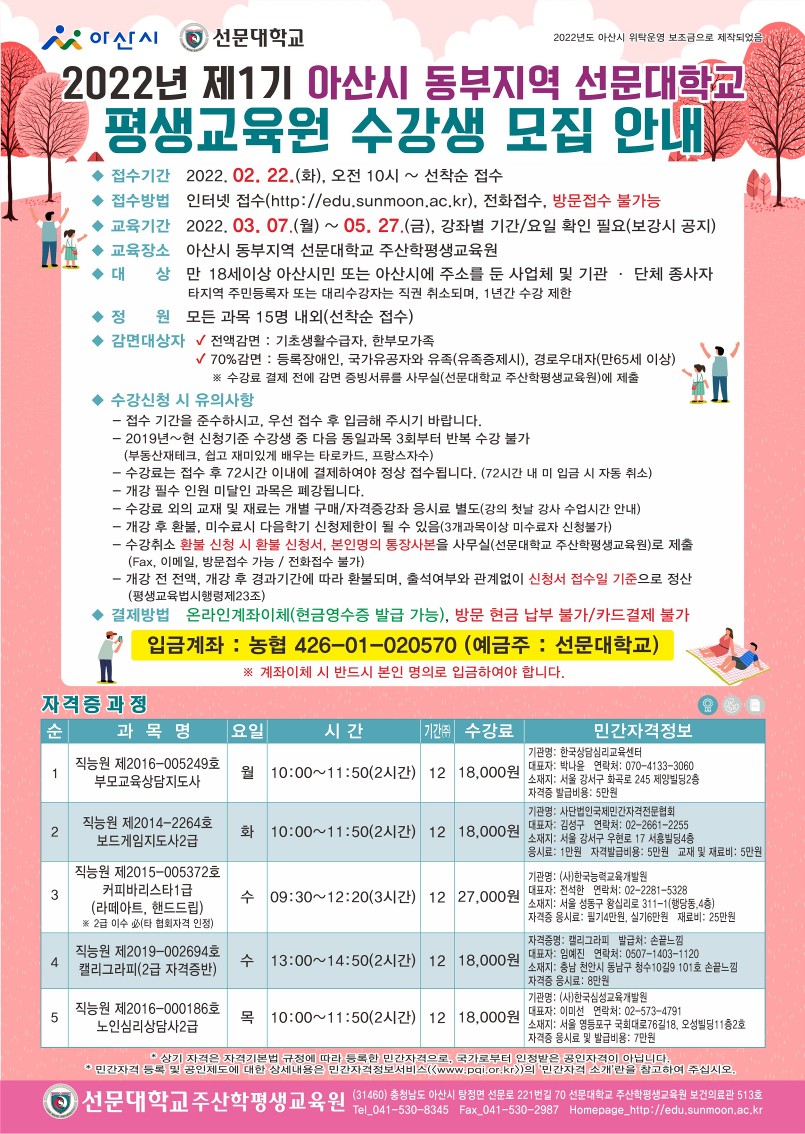 2022년 1기 아산시 동부지역 선문대학교 수강생 모집 안내