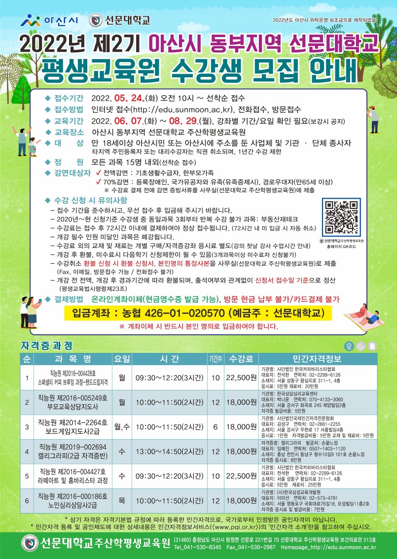 2022년 2기 아산시 동부지역 선문대학교 수강생 모집 안내