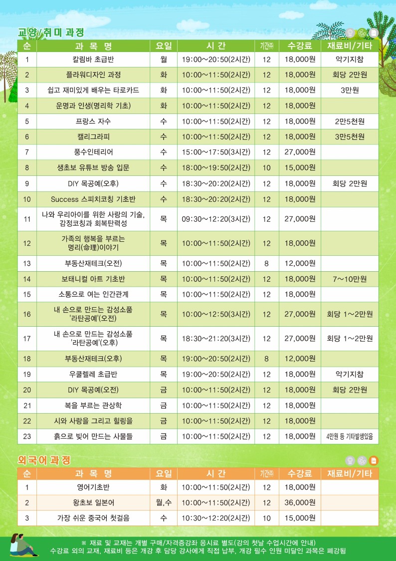 2기 운영 과목과 보다 자세한 내용은 첨부파일을 참고해주시길 바랍니다.