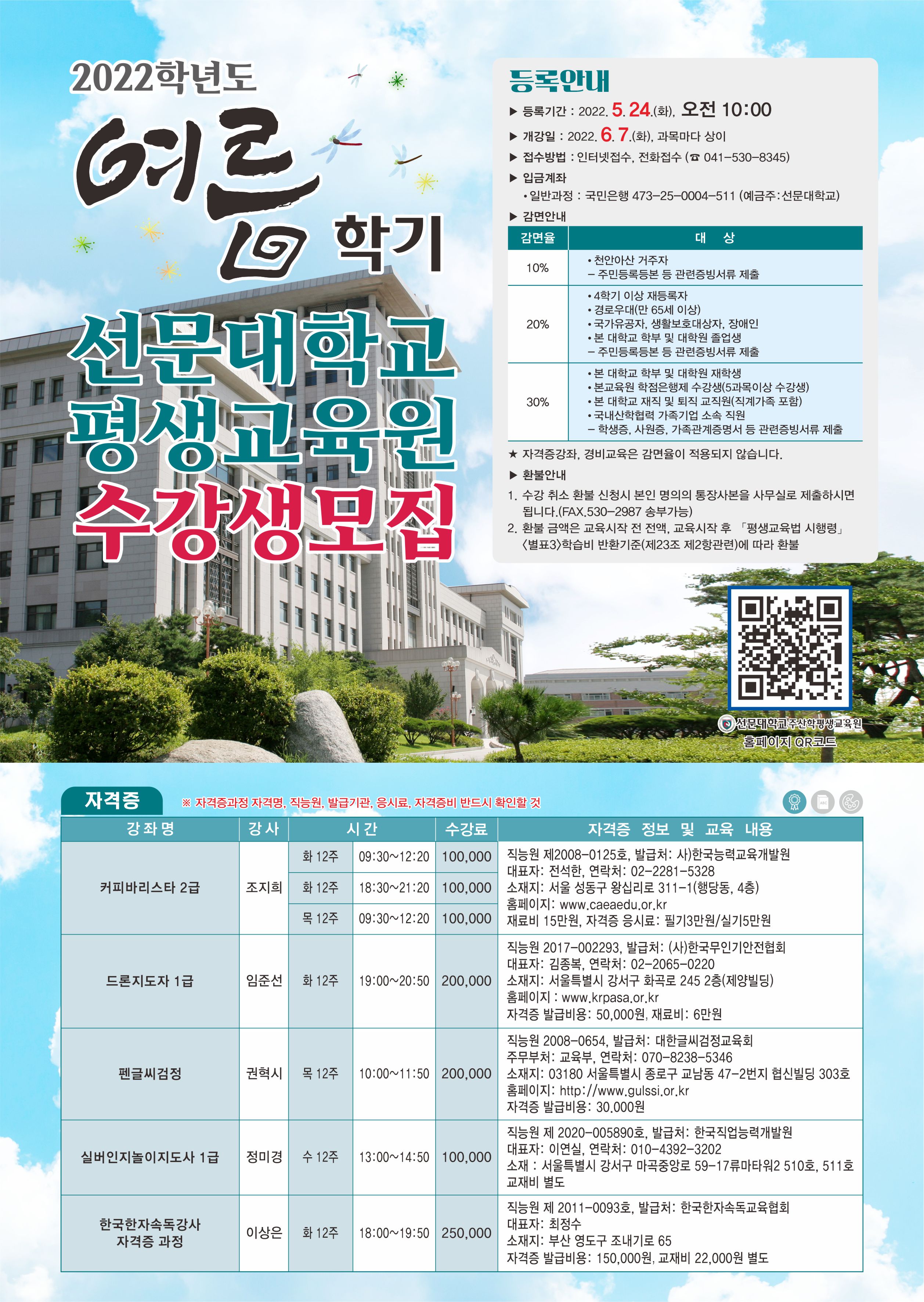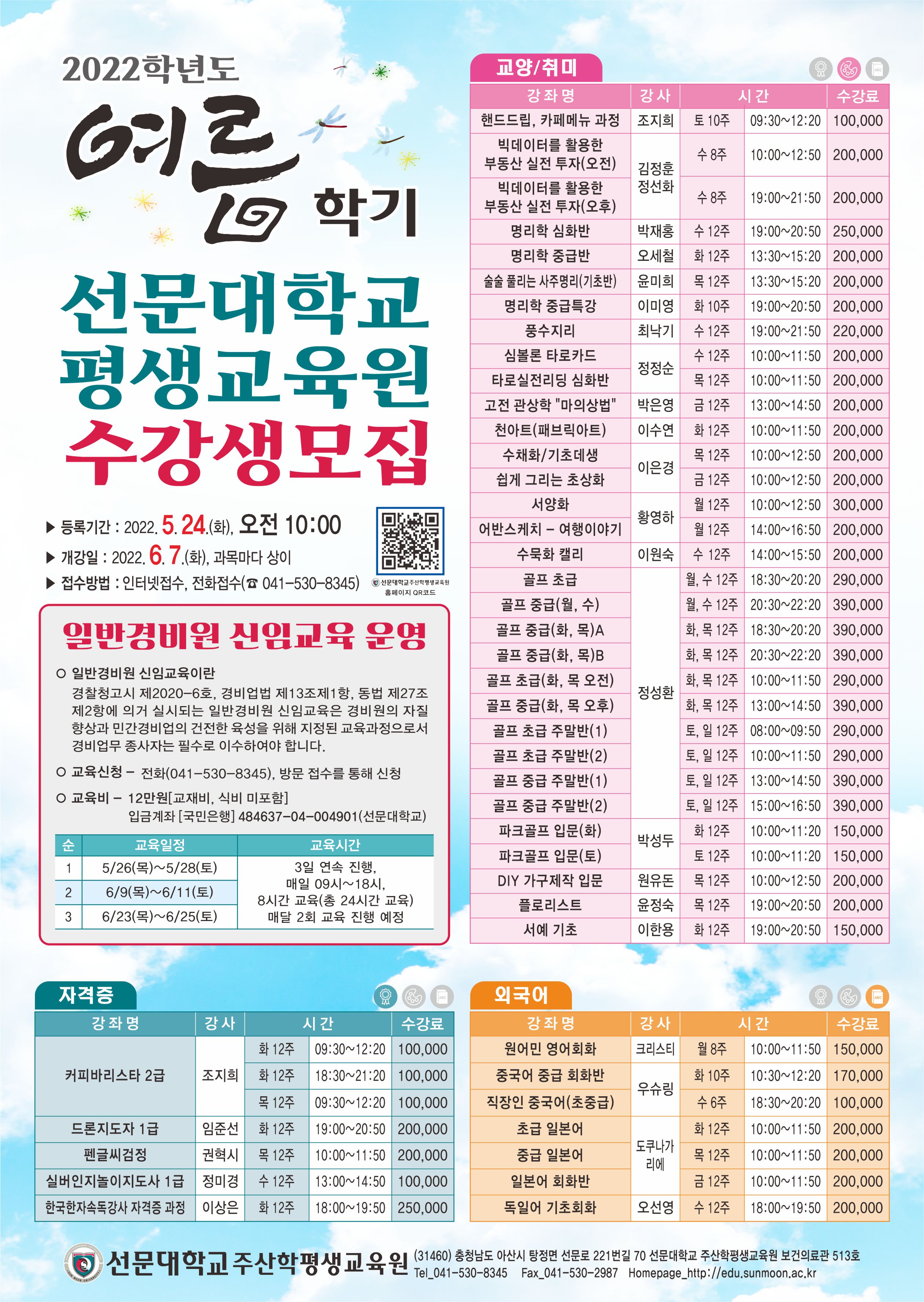 2022년 여름학기 선문대학교 일반강좌 수강생 모집 안내