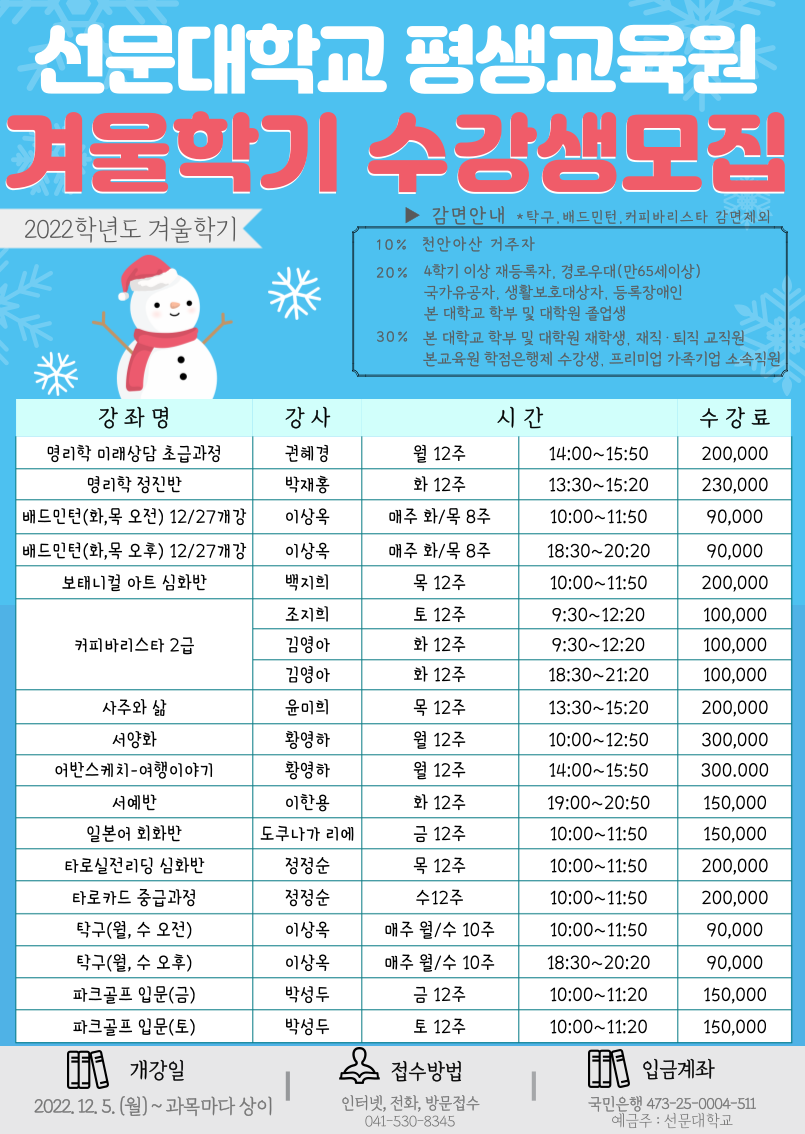 [2022년 겨울학기 선문대학교 일반과정 수강생 모집 안내]